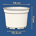 این گلدان با زهکشی مناسب در چهارسایز مختلف با قطر دهانه 14، 17, 19 و 23 سانتیمتر و همچنین دارای زیره مجزا، محیطی مطلوب برای ریشه گیاه ایجاد میکند .